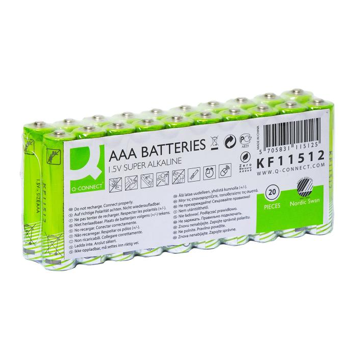 Univerzálna vysokovýkonná alkalická 1,5 V batéria Q-Connect. Neobsahujú žiadnu pridanú ortuť. AAA. Balenie obsahuje 20 ks batérií. Má certifikát ekoznačky Nordic Swan.