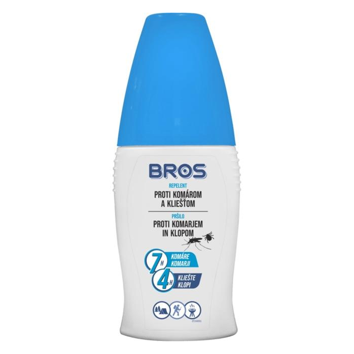 Repelent BROS proti komárom a kliešťom 50 ml účinne odpudzuje komáre, i tie tropické tigrie, po dobu 8 hodín, kliešte po dobu 4 hodín a muchy po dobu 6 hodín.