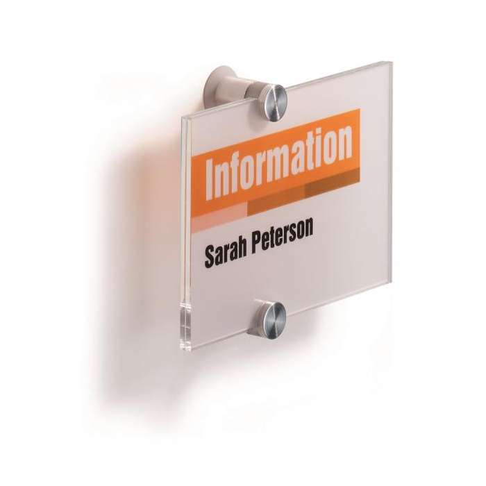 Tabuľka na dvere z novej rady v elegantnom, atraktívnom, a zároveň jednoduchom dizajne. Dodávaná s 2 polopriehľadnými vnútornými listami, vhodnými na farebnú alebo čiernu potlač. Listy sa vložia medzi akrylové panely tabuľky a tabuľka sa prichytí k stene alebo dverám 2 veľkými hliníkovými skrutkami. Ľahká montáž, názorný návod je priložený.