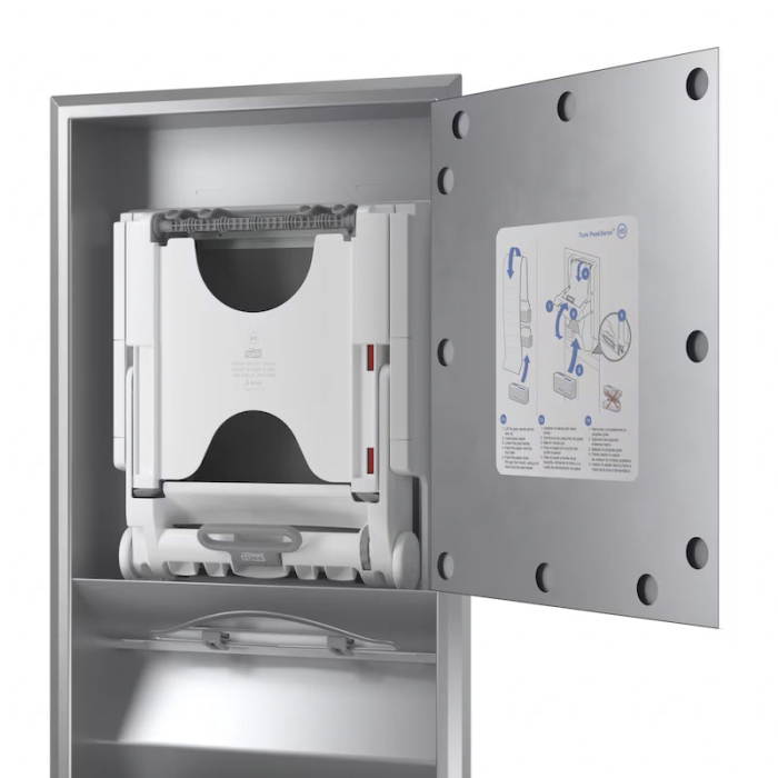 Tork PeakServe®: najnovšia inovácia navrhnutá pre vysoko frekventované toalety a umyvárne, kde personál potrebuje maximalizovať čas upratovania a udržať dobrú plynulosť pre návštevníkov. Systém je kompatibilný s Tork PeakServe® nadväzujúcimi utierkami. Má vysokú kapacitu vyše 1 000 utierok, ktoré dokáže dávkovať rýchlo a plynule bez prerušenia. Stlačené náplne sa rýchlo dopĺňajú a môžete ich kedykoľvek doplniť. Ľahko sa uskladňujú a prepravujú, vďaka čomu umožňujú personálu sústrediť sa na upratovanie a nie na dopĺňanie.