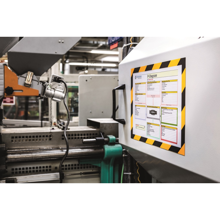 Bezpečnostný panel s magnetickou časťou na zadnej strane rámika na jednoduché a rýchle vkladanie informácie formátu A4. Vhodný na hladké magnetické povrchy, napr. magnetickú tabuľu. Farba žlto-čierna. Balenie 5 kusov.