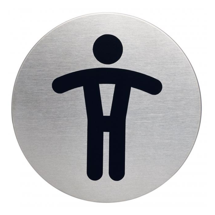 Piktogram na vysoko kvalitnej brúsenej nehrdzavejúcej oceli. Vytlačený symbol je odolný voči poškriabaniu a silnému opotrebeniu. Priemer 83 mm, vďaka lepiacej páske na zadnej strane sa piktogram dá použiť na rôzne povrchy. Farba strieborná, potlač čierna.