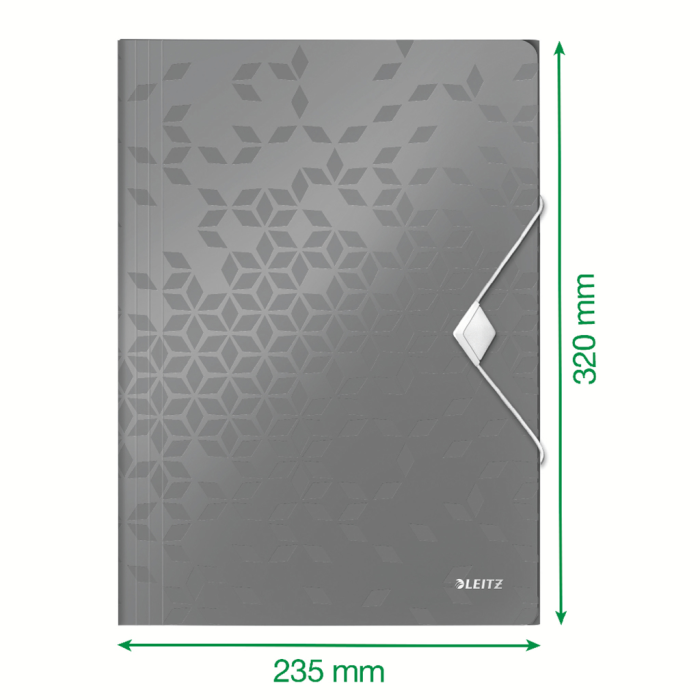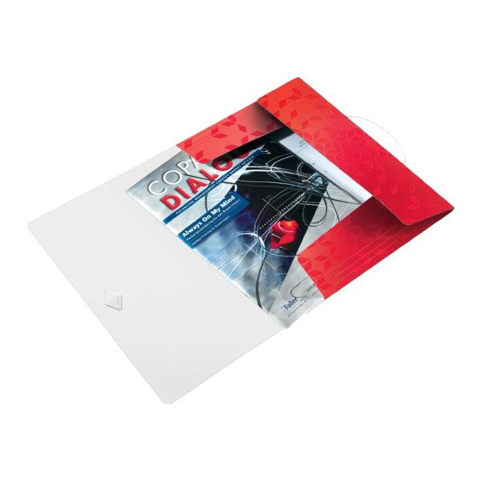 Trojchlopňový obal na dokumenty do formátu A4 z polypropylénu s dlhou životnosťou. V dizajne rady WOW v žiarivej farbe. Uzatváranie uchytením na gumičku. Kapacita 150 listov. Väčšie balenie 10 ks. Farba červená.