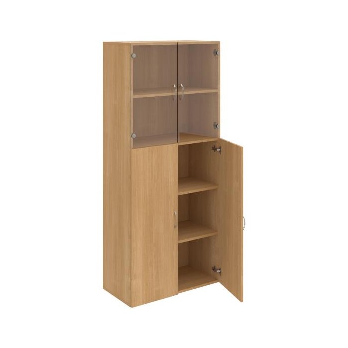 Kombinovaná skriňa - dvere/nika. Dôraz na funkčnosť a cenu. Kvalita a variabilita s nízkymi obstarávacími nákladmi. Materiály výrobcov z Európskej únie. Obojstranne pohľadový chrbát. Zabezpečenie políc proti náhodnému vysunutiu. 45 rôznych prvkov pre Vaše potreby a požiadavky. V našej ponuke nájdete skriňové moduly výšky 185 cm, 111 cm alebo 74 cm a šírky 80 cm alebo 40 cm. Hĺbka všetkých modelov skríň radu Drive je 40 cm (42 cm s dverami). Chrbát, vyrobený z 3 mm hrubých dosiek HDF, je obojstranne pohľadový, takže skrine môžete použiť ako priestorový deliaci prvok. Vďaka polohovateľným policiam (hrúbky 18 mm) je možné priestor prispôsobiť Vašim predstavám. Základná výška úložného priestoru je prispôsobená výške štandardného šanónu. Dvere sú chránené 2mm hranou ABS a osadené kvalitným kovaním s doživotnou zárukou. Okrem plných a presklených dverí Vám ponúkame aj skrine s roletovým systémom. Pokiaľ sa rozhodnete pre umiestnenie skríň na podlahu, nezabudnite si doobjednať rektifikačné nohy, ktoré nie sú štandardnou súčasťou objednávky. Aby sa zásielka dostala v poriadku až do Vašej kancelárie, dodávame skrine demontované v niekoľkých samostatných a bezpečne zabalených balíkoch. Súčasťou každého balenia je tiež prehľadný návod. Na skrive Drive dostanete záruku 5 rokov.