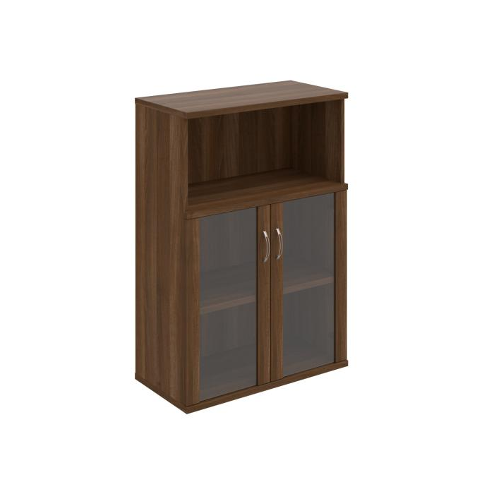 Kombinovaná skriňa - dvere/nika. Kancelárske skrine STRONG majú robustnú konštrukciu a vyššiu nosnosť políc ako bežné kancelárske skrine.V ponuke sú skriňové moduly s výškou 185 cm, 111 cm alebo 74 cm a šírky 80 cm alebo 40 cm. Hĺbka všetkých modelov skriňového radu STRONG je 40 cm.Chrbát, vyrobený z 8 mm hrubých dosák, je obojstranne pohľadový, takže skrine môžete použiť ako priestorový deliaci prvok. Hrúbka samotných políc je 25 mm, čo znamená nosnosť 80 kg na 1 policu.Korpusy, dvierka a police skríň sú olepené odolnou 2mm ABS hranou, ktorá garantuje dostatočnú ochranu proti poškodeniu.