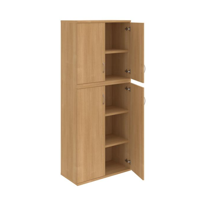 Kombinovaná skriňa - dvere/nika. Kancelárske skrine STRONG majú robustnú konštrukciu a vyššiu nosnosť políc ako bežné kancelárske skrine.V ponuke sú skriňové moduly s výškou 185 cm, 111 cm alebo 74 cm a šírky 80 cm alebo 40 cm.Hĺbka všetkých modelov skriňového radu STRONG je 40 cm.Chrbát, vyrobený z 8 mm hrubých dosák, je obojstranne pohľadový, takže skrine môžete použiť ako priestorový deliaci prvok. Hrúbka samotných políc je 25 mm, čo znamená nosnosť 80 kg na 1 policu.Korpusy, dvierka a police skríň sú olepené odolnou 2mm ABS hranou, ktorá garantuje dostatočnú ochranu proti poškodeniu.