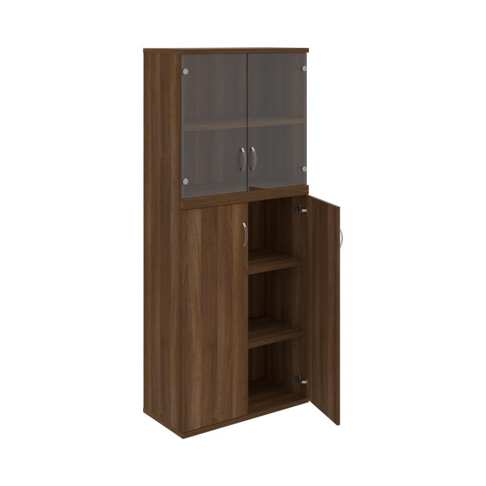 Kombinovaná skriňa - dvere/nika. Kancelárske skrine STRONG majú robustnú konštrukciu a vyššiu nosnosť políc ako bežné kancelárske skrine.V ponuke sú skriňové moduly s výškou 185 cm, 111 cm alebo 74 cm a šírky 80 cm alebo 40 cm. Hĺbka všetkých modelov skriňového radu STRONG je 40 cm.Chrbát, vyrobený z 8 mm hrubých dosák, je obojstranne pohľadový, takže skrine môžete použiť ako priestorový deliaci prvok. Hrúbka samotných políc je 25 mm, čo znamená nosnosť 80 kg na 1 policu.Korpusy, dvierka a police skríň sú olepené odolnou 2mm ABS hranou, ktorá garantuje dostatočnú ochranu proti poškodeniu.