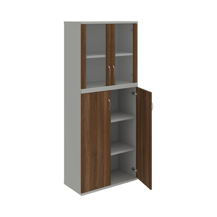 Kombinovaná skriňa - dvere/nika. Kancelárske skrine STRONG majú robustnú konštrukciu a vyššiu nosnosť políc ako bežné kancelárske skrine.V ponuke sú skriňové moduly s výškou 185 cm, 111 cm alebo 74 cm a šírky 80 cm alebo 40 cm. Hĺbka všetkých modelov skriňového radu STRONG je 40 cm.Chrbát, vyrobený z 8 mm hrubých dosák, je obojstranne pohľadový, takže skrine môžete použiť ako priestorový deliaci prvok. Hrúbka samotných políc je 25 mm, čo znamená nosnosť 80 kg na 1 policu.Korpusy, dvierka a police skríň sú olepené odolnou 2mm ABS hranou, ktorá garantuje dostatočnú ochranu proti poškodeniu.