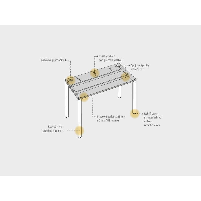 Pracovný stôl rovný. Doska stola z kvalitného lamina. Pevná kovová konštrukcia podnožia. Pevná konštrukcia zo štvorcových profilov 50 × 50 mm je tvorená kompaktnými pármi nôh, ktoré sú spojené priečnikmi. Výškovo nastaviteľná rektifikácia zaisťuje možnosť dorovnania prípadnej nerovnosti podlahy až o 1,5 cm. Stolová pracovná doska z LTD má hrúbku 25 mm a je vybavená 2mm hranou ABS, ktorá ju chráni pred poškodením. Samozrejmosťou sú káblové priechodky a systém pre zavesenie káblov pod stolovou doskou. Možnosť objednania bieleho či sivého prevedenia podnožia. Stolové doplnky, kontajnery a skrine vyberajte z ponuky kancelárskeho nábytku Hobis. Aby sa zásielka dostala v poriadku až do Vašej kancelárie, dodávame stoly demontované v niekoľkých samostatných, bezpečne zabalených krabiciach. Súčasťou každého balenia je tiež prehľadný návod. Na stoly UNI sa vzťahuje záruka 5 rokov. Farebnosť je ilustratívna. Cena montáže je 15% z cenníkovej ceny výrobku. Požiadavku na montáž uveďte prosím do poznámky k objednávke. Objednávka tohto produktu je záväzná a produkt nie je možné vrátiť.