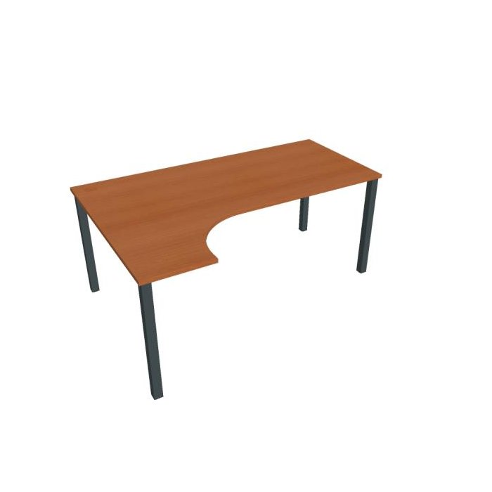 Stôl ergonomický pravý. Doska stola z kvalitného lamina. Pevná kovová konštrukcia podnožia zo štvorcových profilov 50 x 50 mm je tvorená kompaktnými pármi nôh, ktoré sú spojené priečnikmi. Výškovo nastaviteľná rektifikácia zaisťuje možnosť dorovnania prípadnej nerovnosti podlahy až o 1,5 cm. Stolová pracovná doska z LTD má hrúbku 25 mm a je zakončená 2mm hranou ABS, ktorá ju chráni pred poškodením. Samozrejmosťou sú káblové priechody a systém pre zavesenie káblov pod stolovou doskou. Možnosť objednania i v bielej farbe. Stolové doplnky, kontajnery a skrine vyberajte z ponuky kancelárskeho nábytku Hobis. Aby sa zásielka dostala v poriadku až do Vašej kancelárie, dodávame stoly demontované v niekoľkých samostatných a bezpečne zabalených škatuliach. Súčasťou každého balenia je tiež prehľadný návod. Na stoly UNI sa vzťahuje záruka 5 rokov. Farebnosť je ilustratívna.