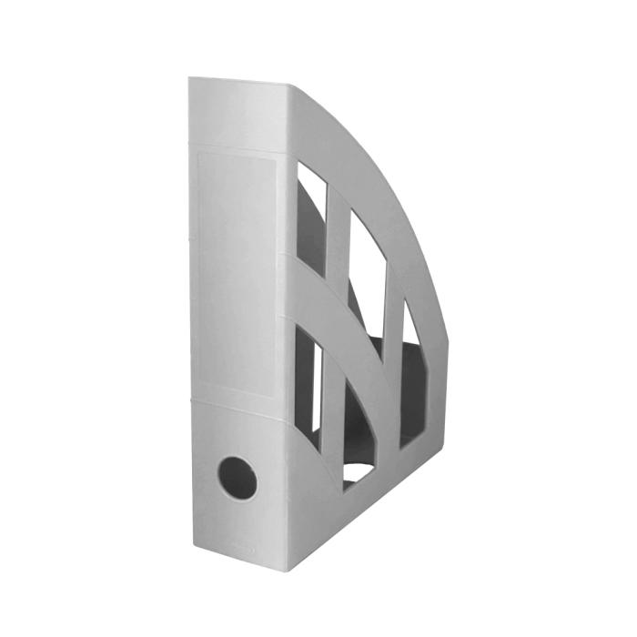 Plastový stojan na časopisy zaoblený dizajn - odolný materiál, miesto na etiketu na chrbte. Farba sivá.