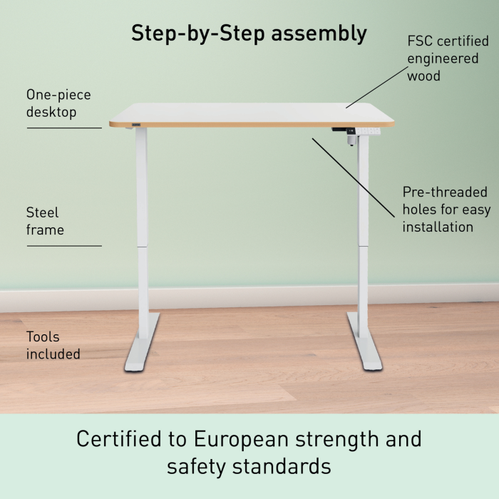 • Navrhnuté na používanie v domácich kanceláriách, priestoroch s vysokou frekvenciou stolov, študentských priestoroch či ako dočasný stôl, s jednoduchým nastavením výšky a 4 obľúbenými predvoľbami výšky