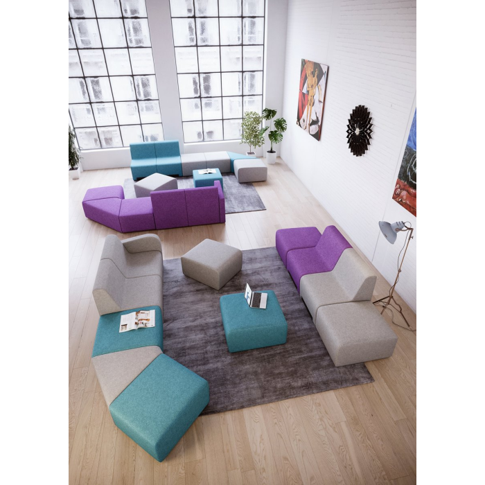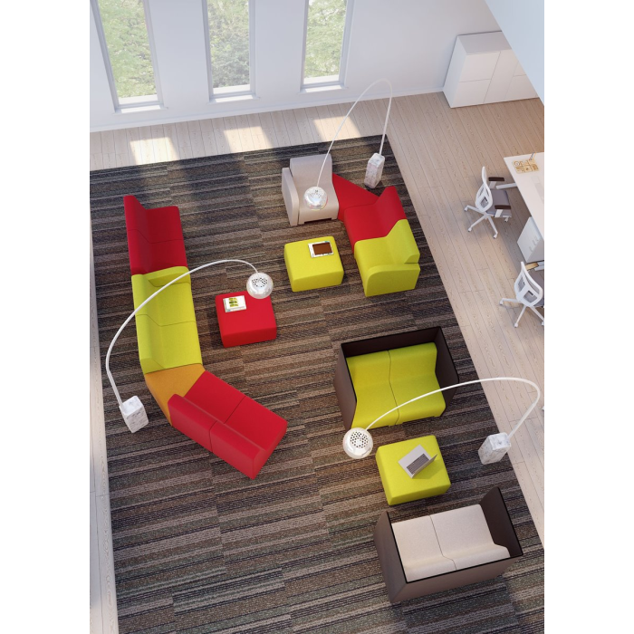 Modulárny systém navrhnutý pre relaxačné zóny v oblastiach kreatívnych a interaktívnych pracovných miest.