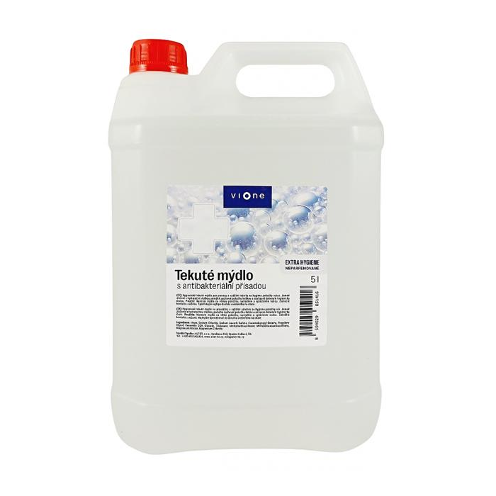 VIONE TEKUTÉ MYDLO EXTRA HYGIENE neparfumované s antibakteriálnou prísadou je vhodné pre prevádzky s vyššími nárokmi na hygienu pokožky rúk.
