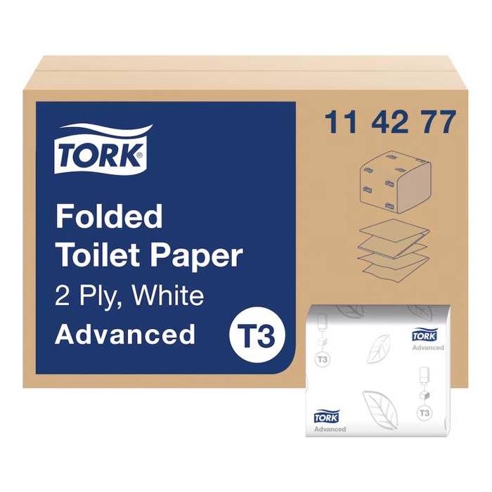 Systém Tork Folded skladaný toaletný papier ponúka hygienické dávkovanie po útržkoch, čo znižuje odpad a náklady na údržbu. Tork Folded toaletný papier Advanced výborne vyvažuje náklady a výkon. Tento systém je ideálny pre stredne frekventované prostredia.