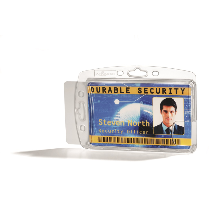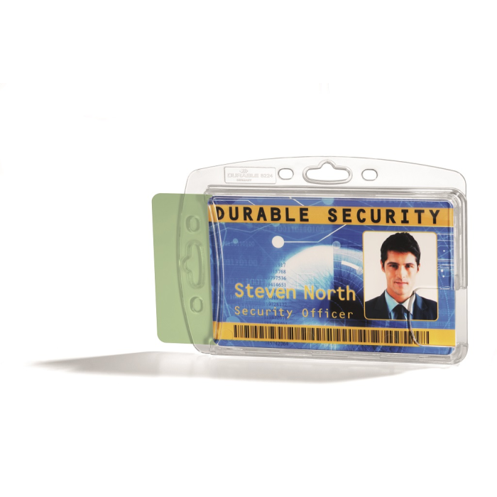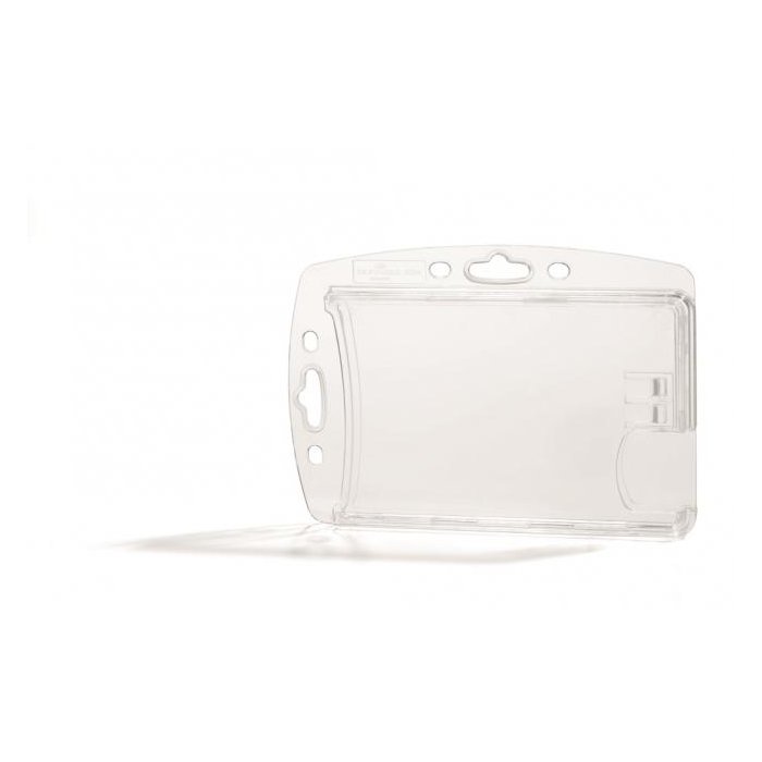 Uzavretá visačka na dve plastové karty zo silného priehľadného nepružného plastu, chrániaca karty z oboch strán. Vkladanie kariet po kratšej strane. Možnosť použitia horizontálne aj vertikálne, kombinovateľná s klipom, remienkom a retiazkou. Balenie 10 ks.