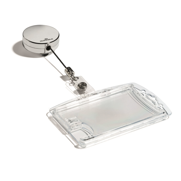 Vysúvací kotúč s možnosťou vysunutia do 80 cm. Vhodný na uchytenie všetkých visačiek značky DURABLE s perforáciou. Priemer kotúča 40 mm. Balenie 10 ks. Farba: strieborná