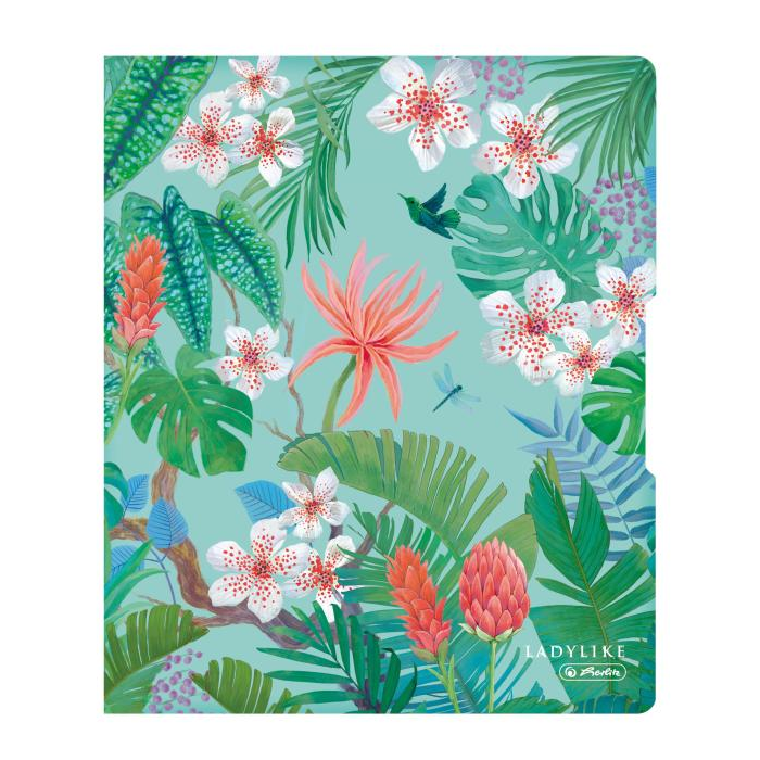 Zakladač 2-krúžkový Ladylike, PP, mechanika typ D, výška plnenia 16 mm. Motív Jungle.